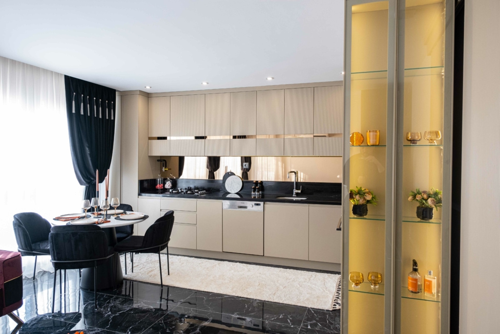 Baysallar Mutfak olarak bu projenin tüm mutfak, banyo, Hilton lavabo, giyinme odası, kiler ve vestiyer uygulamalarını üstlendik. Her detayı işlevsellik ve estetikle bütünleştirerek, projeye değer kattık.